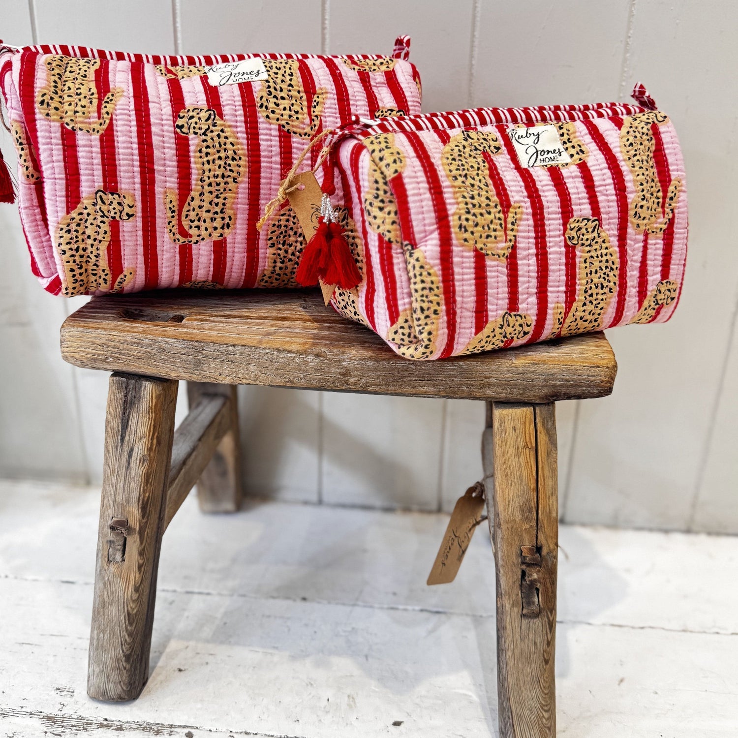 Our delicious hand block-printed, cotton cosmetics bag are made especially for us...