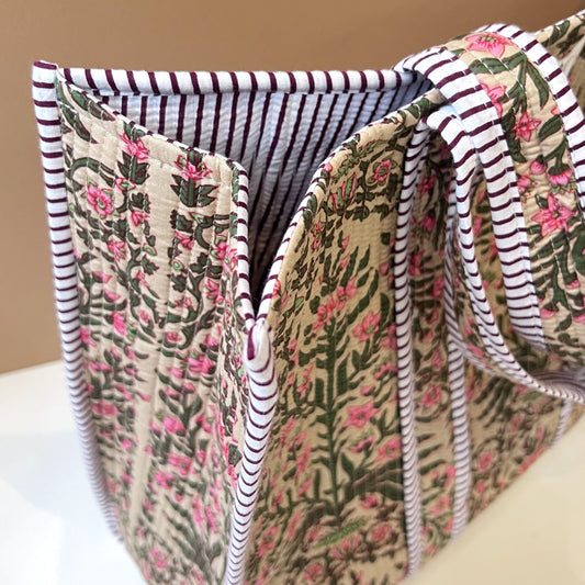 Crossbody Bag - Blush & Chestnut Wide Stripe