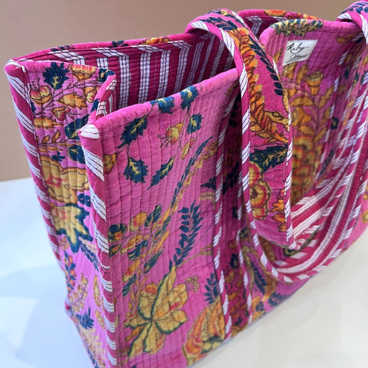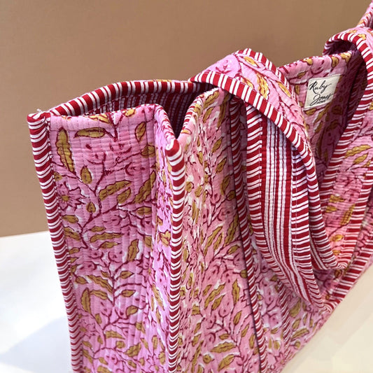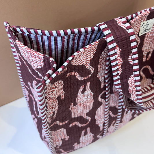 Round-Handle Tote - Red Check with Red Stripe Piping