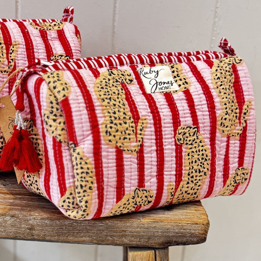 Our delicious hand block-printed, cotton cosmetics bag are made especially for us in Jaipur, India, with our RJH label on one side.