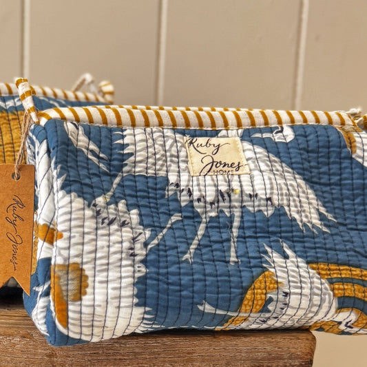 Cosmetics Bag - Golden Cranes on Sapphire Blue