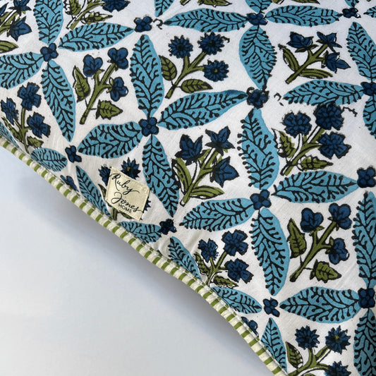 Cushion - Blue Wildflowers on Trellis with Green Piping