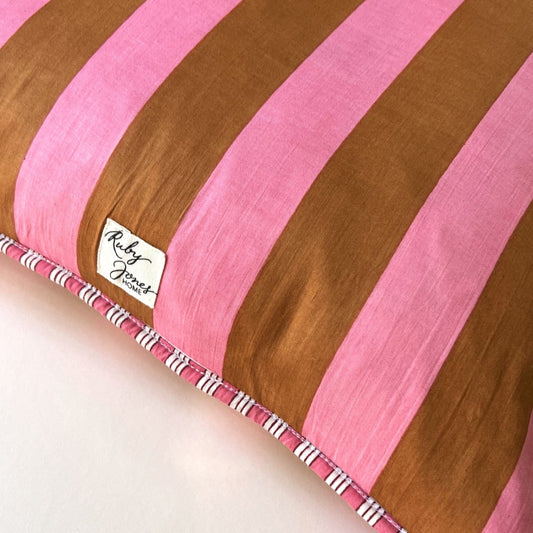 Cushion - Caramel & Pink Wide Stripe with Pink stripe Piping
