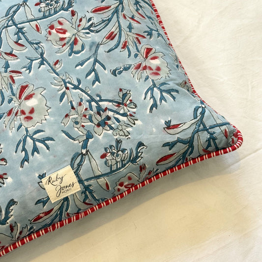 Cushion - Sky Blue & Red Botanical - Rectangular