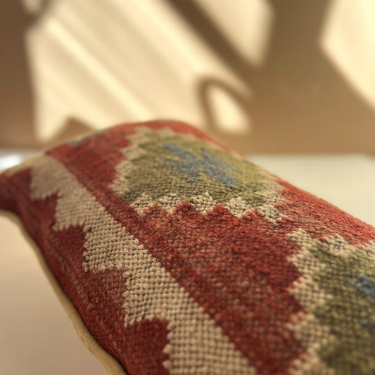 Lumbar Cushion - Handwoven Kilim/ Sand, Brick, Charcoal & Sea Foam